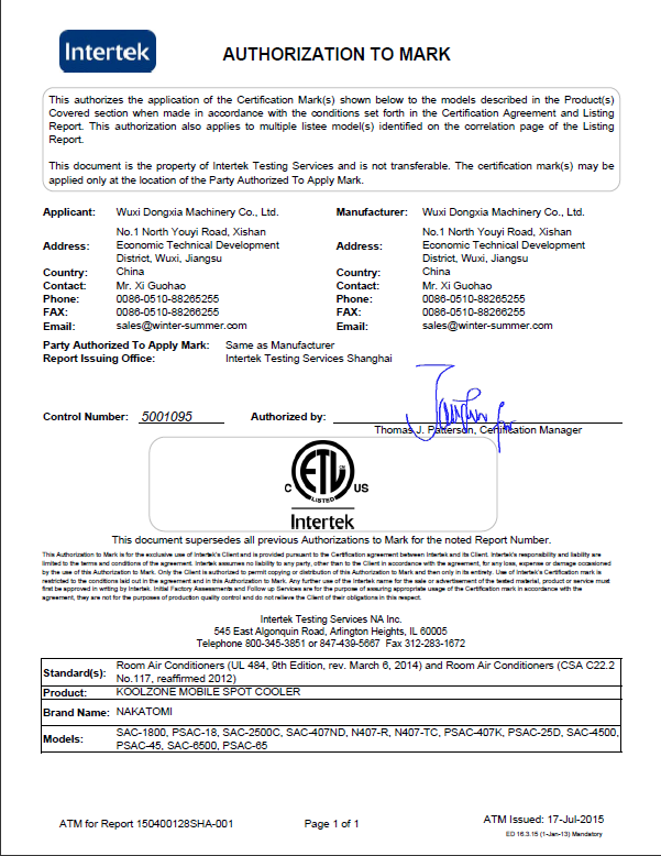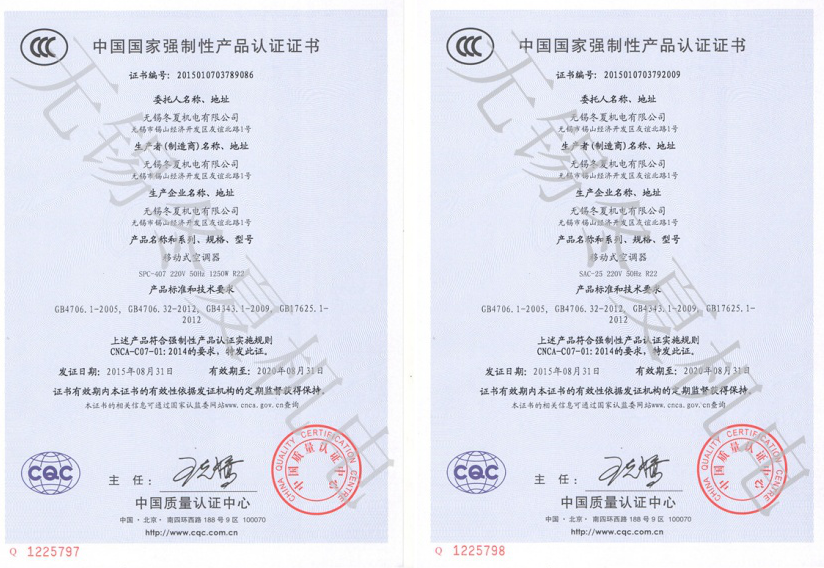 近日,無錫冬夏機(jī)電有限公司的移動(dòng)工業(yè)冷氣機(jī)、暖風(fēng)機(jī)產(chǎn)品7個(gè)型號(hào)取得了中國質(zhì)量認(rèn)證中心頒發(fā)的3C強(qiáng)制認(rèn)證證書。3C認(rèn)證的全稱為“強(qiáng)制性產(chǎn)品認(rèn)證制度”,它是中國政府為保護(hù)消費(fèi)者人身安全和安全、加強(qiáng)產(chǎn)品質(zhì)量管理、依照法律法規(guī)實(shí)施的一種產(chǎn)品合格評(píng)定···