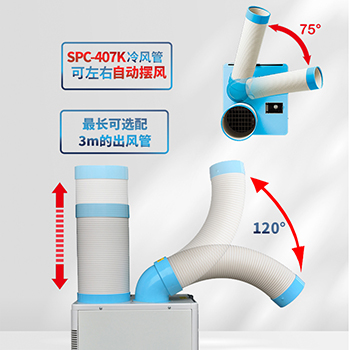 冷風(fēng)管可在一定范圍內(nèi)任意彎曲,大角度旋轉(zhuǎn)。左右自動擺風(fēng),降溫范圍更廣。