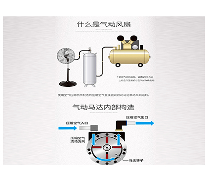 使用空氣壓縮機(jī)所制造的壓縮機(jī)空氣驅(qū)動(dòng)馬達(dá),帶動(dòng)風(fēng)扇運(yùn)轉(zhuǎn)。